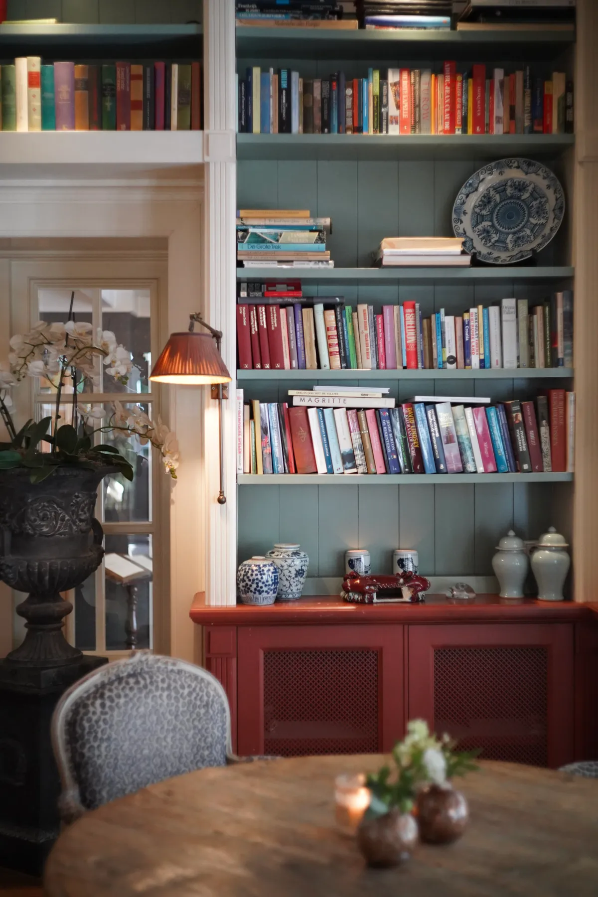 De Heerenkamer was in de beginjaren van het hotel het restaurant. Ondertussen is deze lounge al jaren de plek waar onze gasten komen voor een kopje koffie of een borrel. Ook biedt de grote, gevulde boekenkast een grote collectie leesvoer - van romans tot informatieve boeken is er voor ieder een goed boek te leen tijdens het verblijf. Ook herbergt deze lounge een spelletjeskast waar jong en oud gebruik van mag maken.